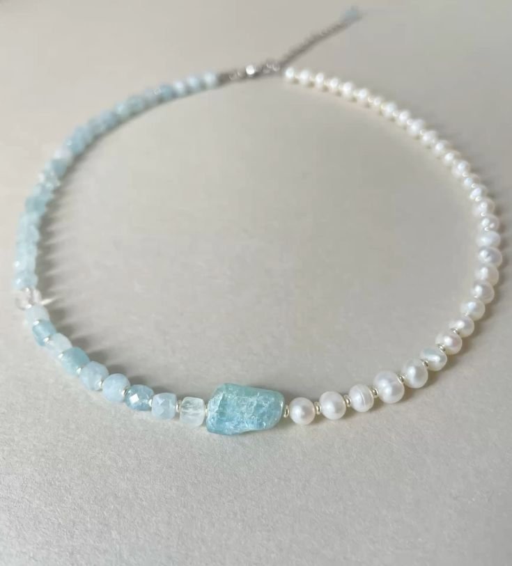Blue Stone With White Pearl Necklace
